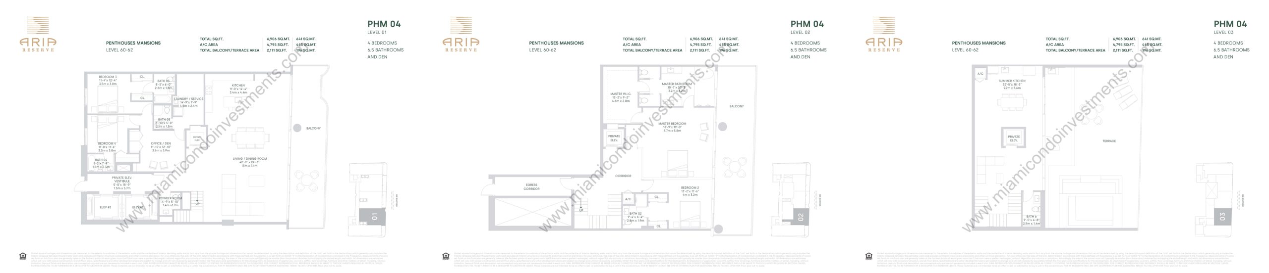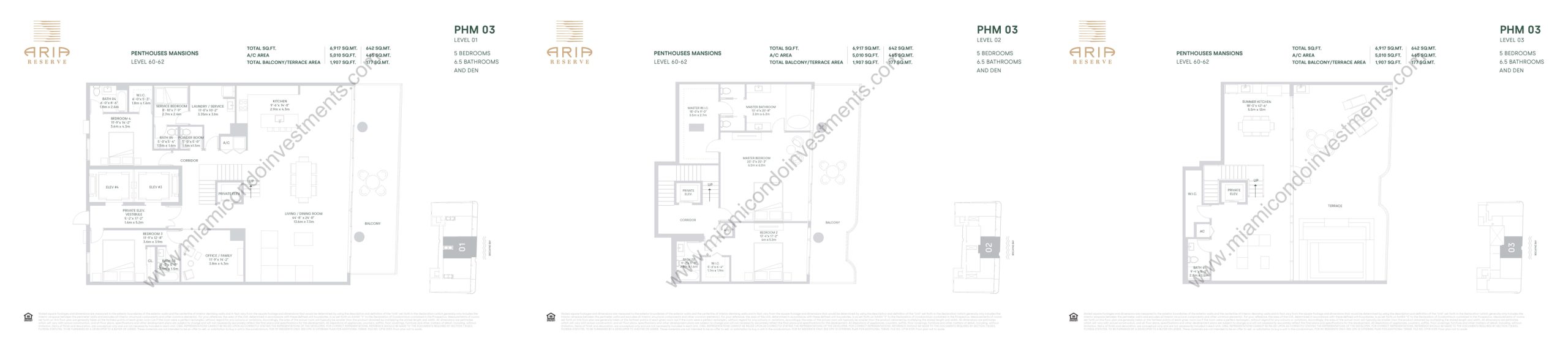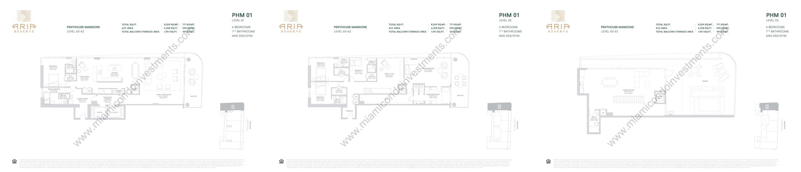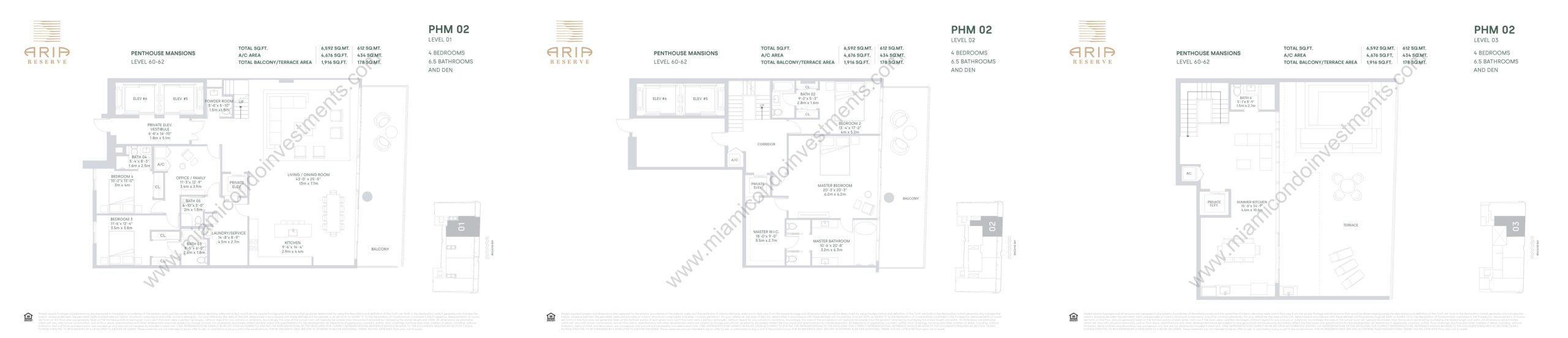 | Line | Beds | Baths | Den | Sqft(int) | Sqft(ext) | Sqft total | M² (int) | M² (ext) | M² Total |