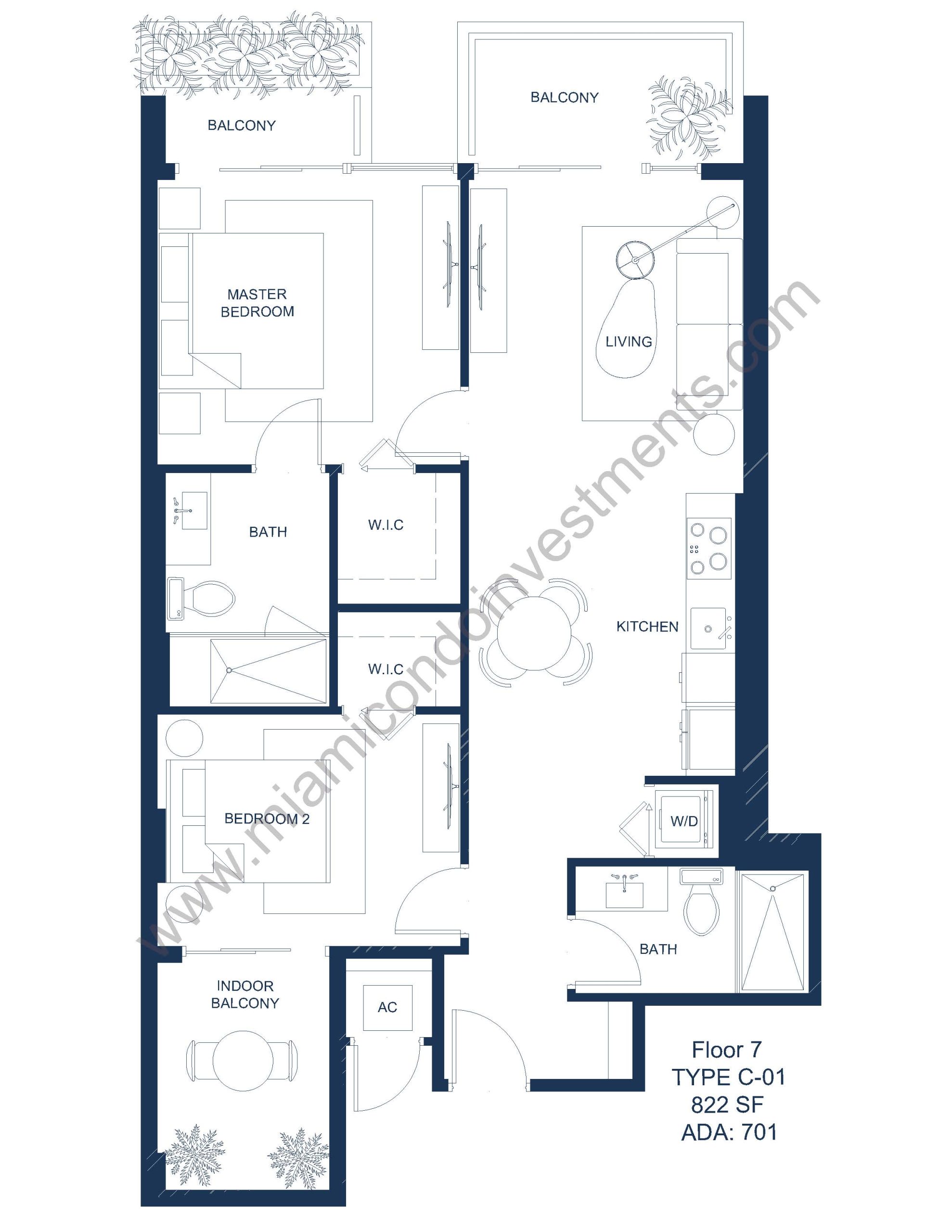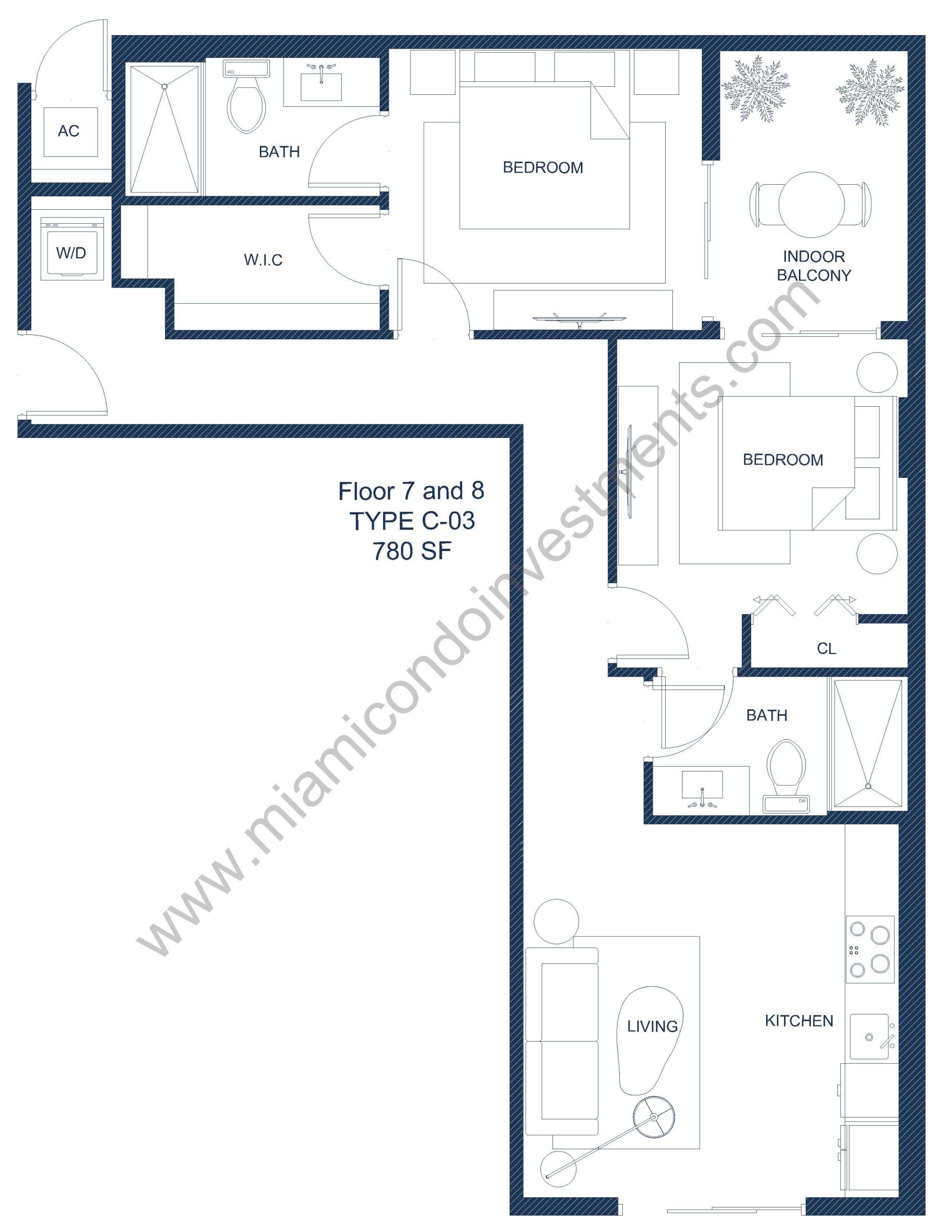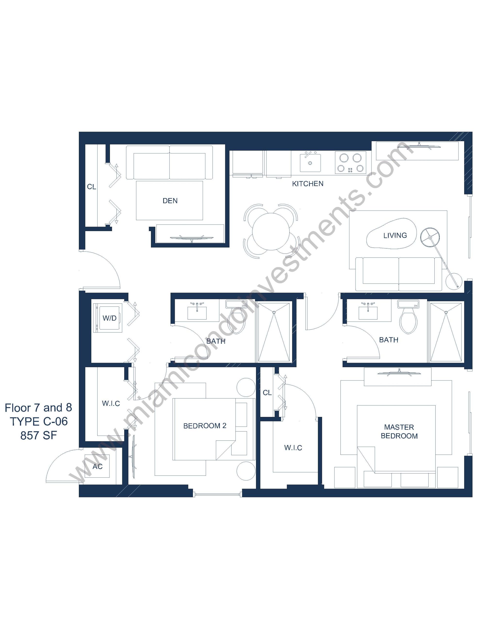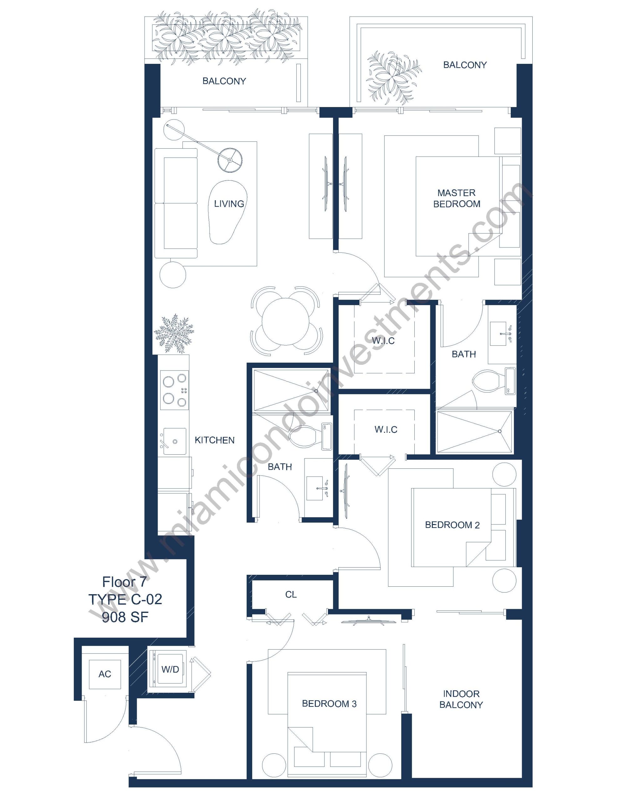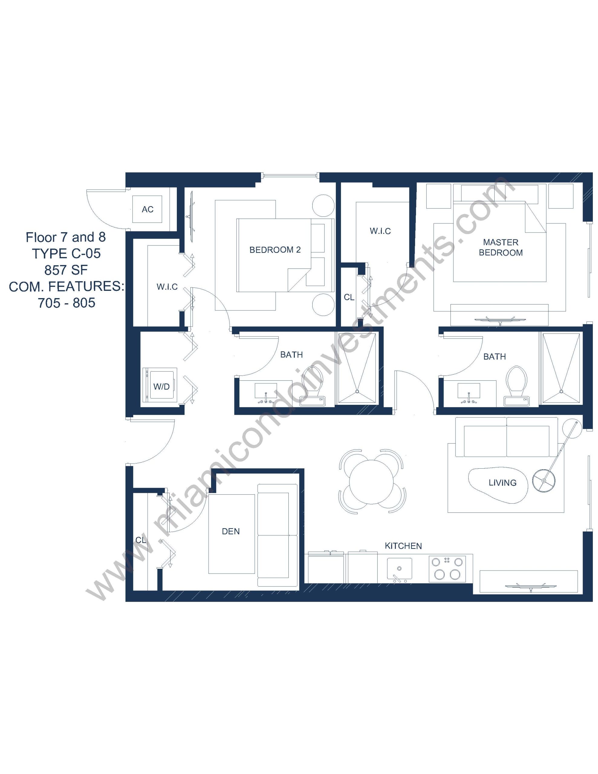Line | Beds | Baths | Den | Sqft(int) | Sqft(ext) | Sqft total | M² (int) | M² (ext) | M² Total |
