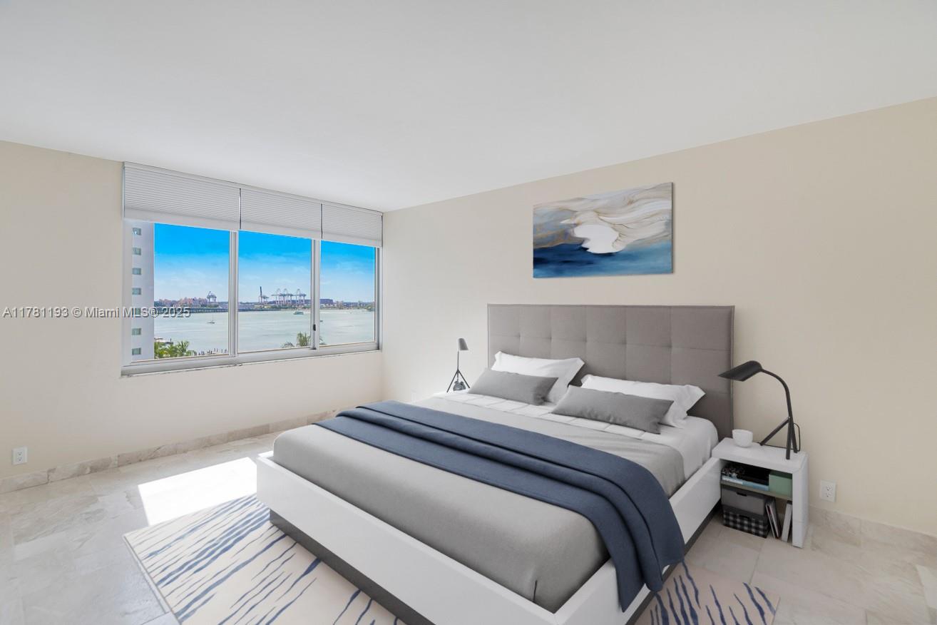 Experience luxury & enjoy breathtaking Bay Views from this fantastic unit. Largest 1 Bdrm in the building w/ 970 SF. Featuring high end renovations from top to bottom w/ travertine floors, open concept floor plan, top of the line appliances, wine cooler, open kitchen w/ granite counter top table/bar to entertain, recessed lighting, custom interior doors, the walk in closet of your dreams & amazing bay views! High speed internet & cable included. Mirador 1200 features Bayfront pool, jacuzzi, valet, gym, party room w/ ping pong, pool, 24-hour concierge/security, business center & BBQ. Blocks from Lincoln Rd, Whole foods, Flamingo Park, Trader Joe's, restaurants & Beach. Unit delivered Unfurnished. 3 photos are virtually staged. Available for 12 month lease.