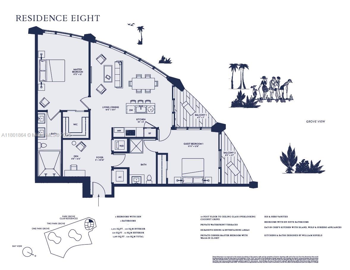 2-Bed+DEN/2-Bath unit situated in Tower 3 at Park Grove in bayfront Coconut Grove, steps from a variety of shopping, restaurants, parks & marinas. 1,231 SF of interior space offering floor-to-ceiling windows/sliding doors, wood-grained porcelain flooring, custom lighting & remote-controlled shades throughout. Eat-in Chef's kitchen with island, marble countertops & Wolf/Sub-Zero appliances. Bedrooms feature custom closets, blackout & solar shades & ensuite spa-like bathrooms. 2 private terraces with spectacular views of Coconut Grove. Park Grove amenities include an on-site restaurant, pool deck with 500-FT pool & private cabanas, rooftop pool, outdoor amphitheater, kid's room, reading room, high-tech fitness center, yoga room, wellness spa, movie theater & lush gardens.