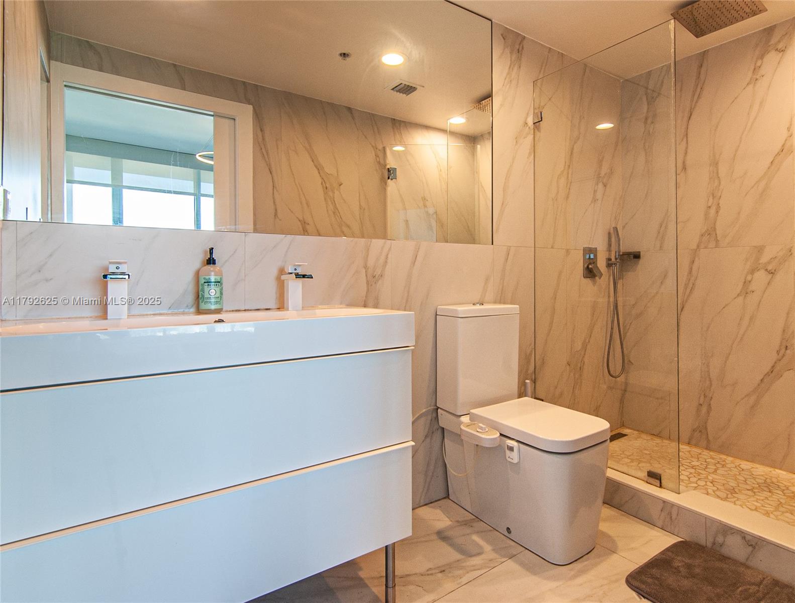 Gorgeous unit with spectacular views of the bay and downtown Miami. Features 2 bedrooms, 2.5 baths, porcelain floors throughout the unit. Floor to ceiling impact glass windows, stainless steel appliances, washer/dryer in unit, Built in closets, split floor plan. One parking space, semi private foyer. Fully Renovated. Views are amazing and endless with ZERO obstruction as the impact glass goes from the floor to the ceiling. Spectacular and breath-taking sunsets. The building has an incredible gym, business center, steam sauna, great pool and barbecue area and much more. One assigned parking spot. FURNISHED or UNFURNISHED