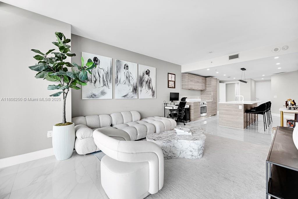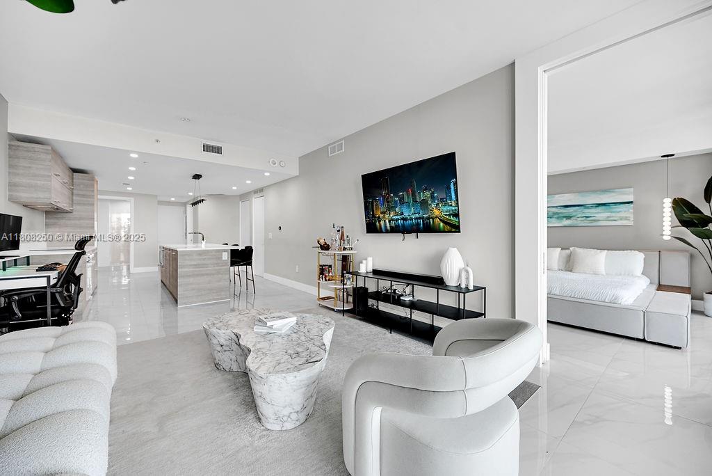 Experience luxury living in this modern condo located in the heart of Miami. This elegant residence features private elevator access, 9-foot ceilings, upgraded marble floors, and floor-to-ceiling impact glass offering stunning views. Thoughtfully furnished with high-end pieces from Rove Concepts, the unit includes spacious walk-in closets and sleek modern finishes. Enjoy resort-style amenities: heated pool, cabanas, BBQ area, full spa with steam and sauna, state-of-the-art gym, elegant lounge with billiards and wine cellar, private theater, cigar lounge, bowling alley, golf simulator, game room, and kids’ play area. Just 15 minutes from MIA airport and steps from Wynwood, Design District, Downtown, and Amara at Paraiso.