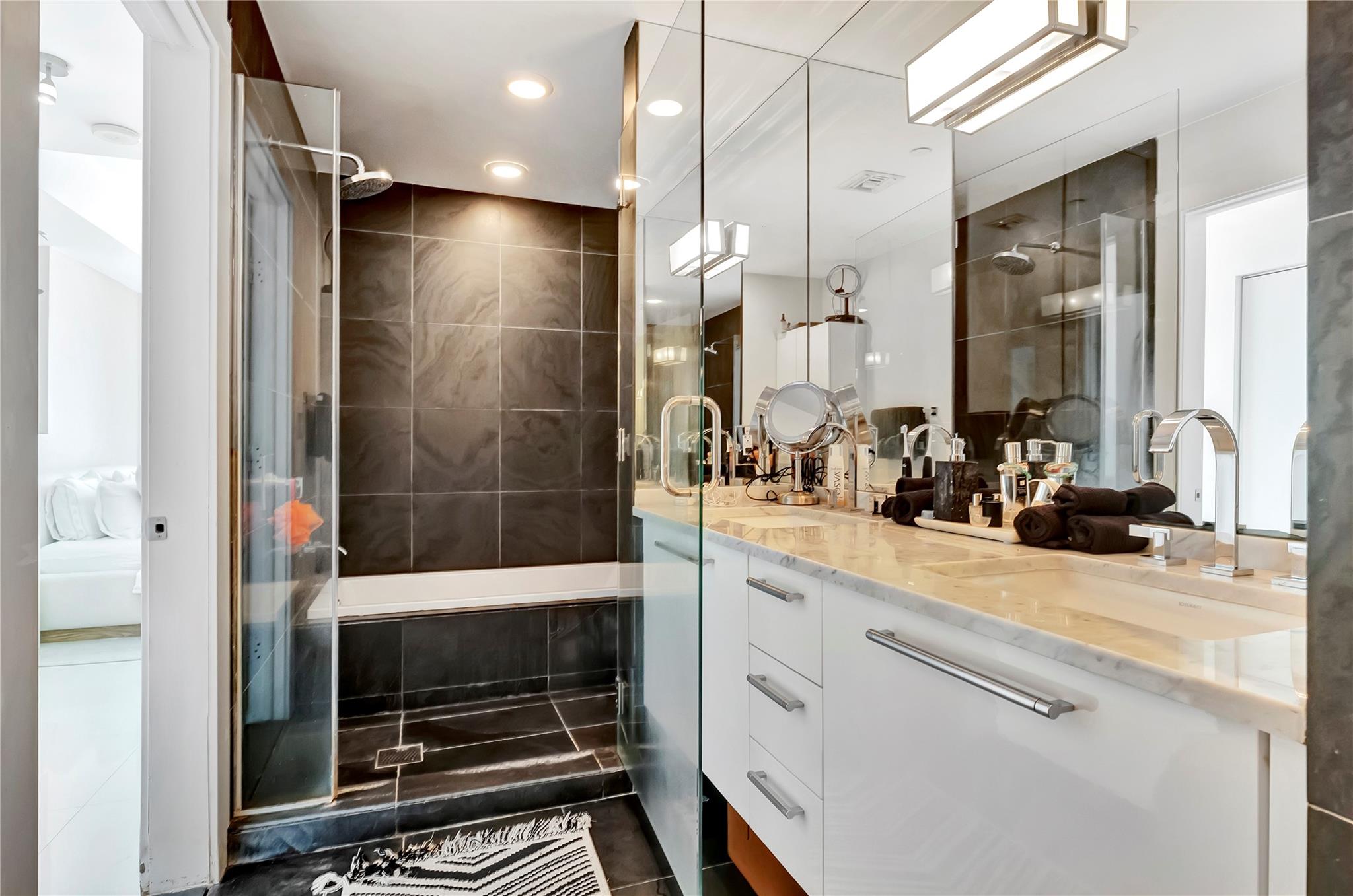 Available starting June 17th! Come see this fully furnished 1-bedroom, 2-bathroom condo, on the 49th floor of the prestigious 900 Biscayne Blvd. This extraordinary residence features an east-facing balcony, offering unobstructed, panoramic views of the Biscayne Bay and Miami Beach. Step inside to discover an open-concept living area designed with sleek, modern finishes and plenty of natural light, creating an ambiance of sophistication and warmth. The condo comes fully furnished with contemporary, high-end furniture and sophisticated decor. Convenient In-unit washer/dryer and dedicated self-parking spot in the secure, attached garage. The building includes 24/7 front desk attendant, security, valet service, gym, two pools and much more. Landlord is open to 3 month up to 1 year leases.